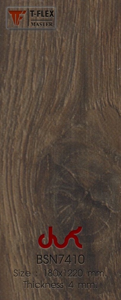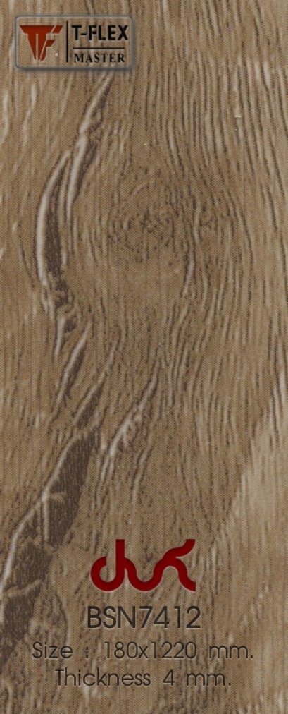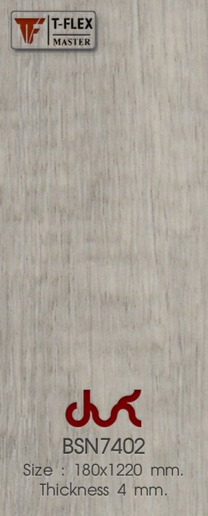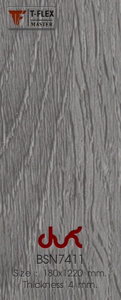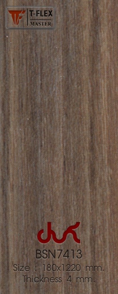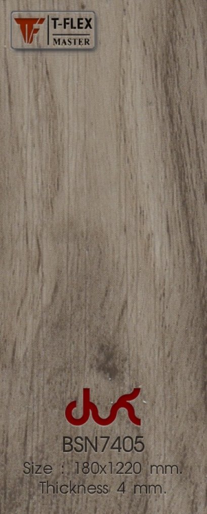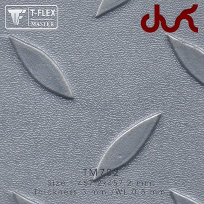 กระเบื้องไวนิลลายเหล็ก ติดตั้งด้วยกาว ยี่ห้อ T-FLEX MASTER ความหนา 3.0 มม. ขนาด 457.2x457.2 มม. ผิวเคลือบ 0.5 มม. บรรจุ 16 แผ่น/3.35 ตรม.