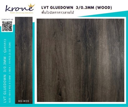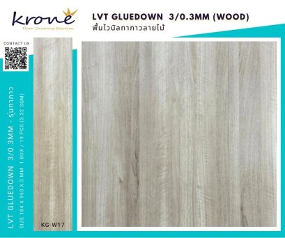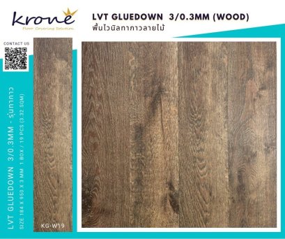 กระเบื้องไวนิลลายไม้ ติดตั้งด้วยกาว ยี่ห้อ โครเน่ ความหนา 3.0 มม. ขนาด 184x950 มม. ผิวเคลือบ 0.3 มม. บรรจุ 19 แผ่น/3.32 ตรม.