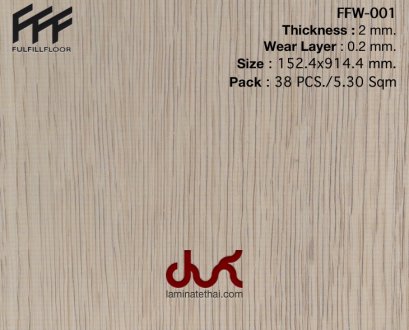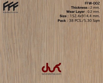 กระเบื้องไวนิลลายไม้ ติดตั้งด้วยกาว ยี่ห้อ FULFILLFLOOR ความหนา 2 มม. ผิวเคลือบ 0.2 มม.