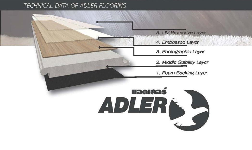 กระเบื้องยางลายไม้ SPC คลิ๊กล็อค ADLER หนา 5 มม. (ความหนา 4 มม.+ โฟม IXPE 1 มม.) ติดตั้งด้วยระบบเข้าลิ้น ไม่ต้องใช้กาว