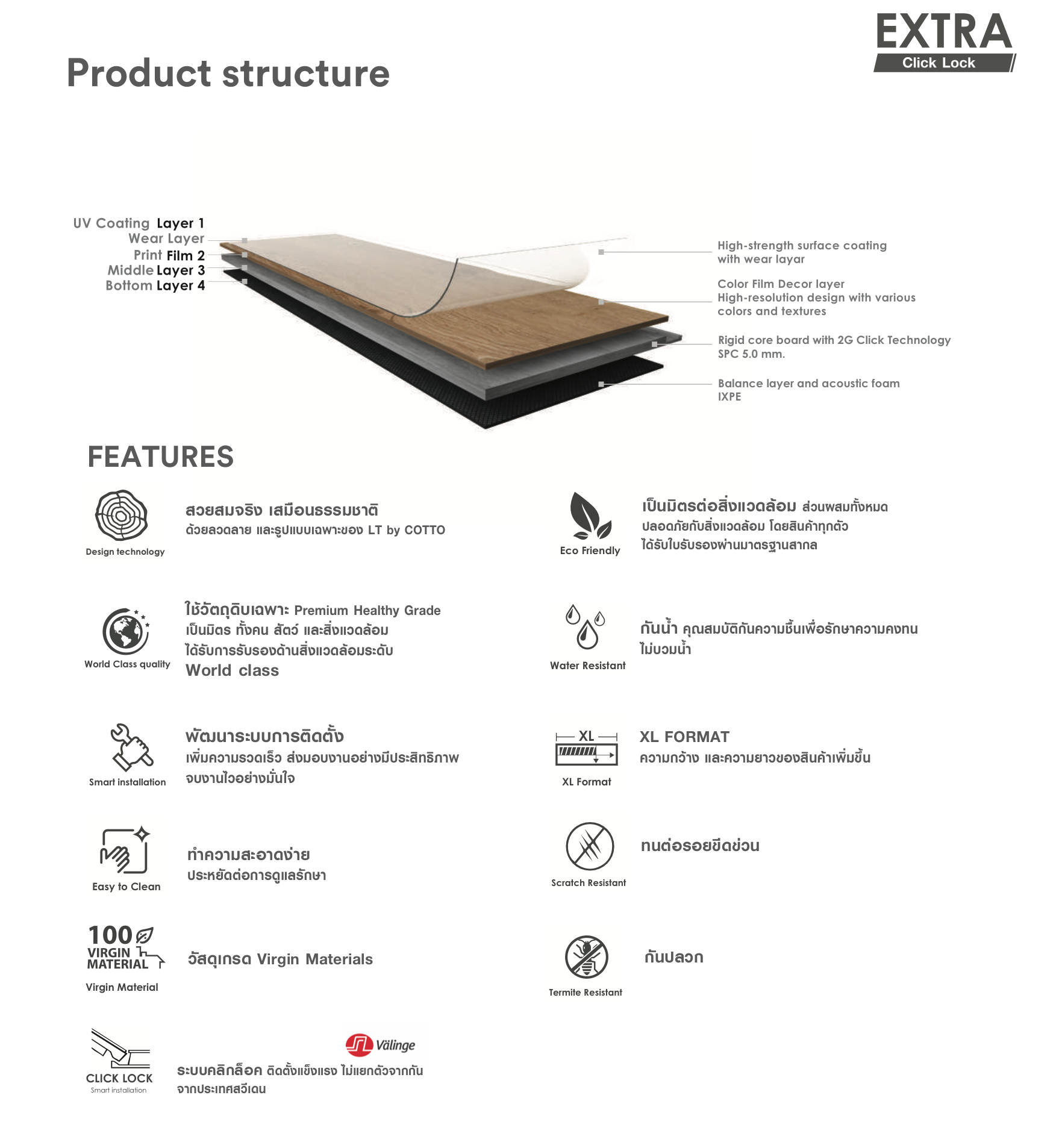 กระเบื้องยางคลิ๊กล็อค ลายไม้ ความหนา 6 มม. LT by COTTO ที่สุดของพื้นแห่งคุณภาพ วัสดุปูพื้นลายไม้ธรรมชาติ ชั้นวัสดุหนาพิเศษ ป้องกันน้ำ 100% ปลวกไม่กิน