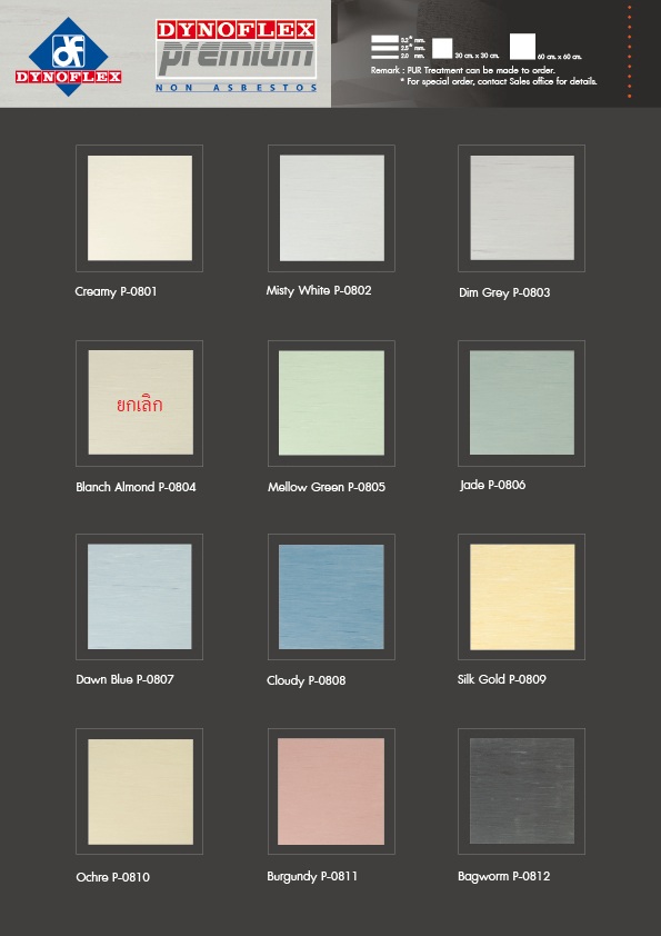 กระเบื้องยาง Dynoflex รุ่น Premium หนา 2.0, 2.5 และ 3.2 มม. ขนาด 30x30 ซม. และ 60x60 ซม.