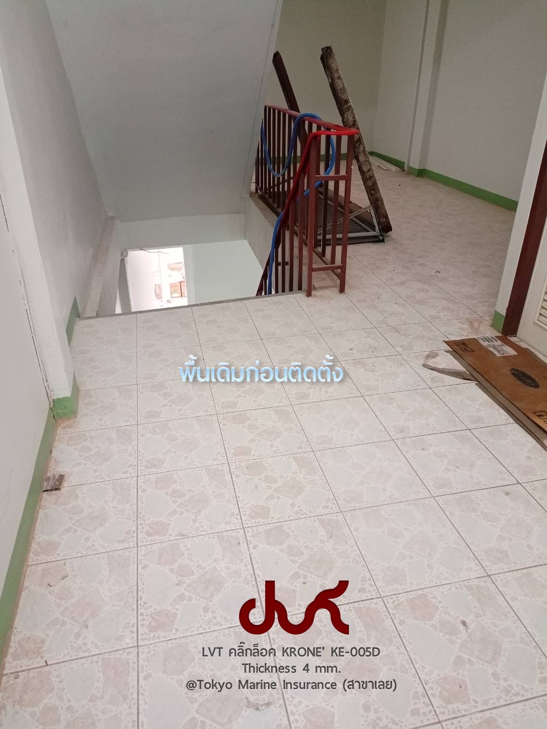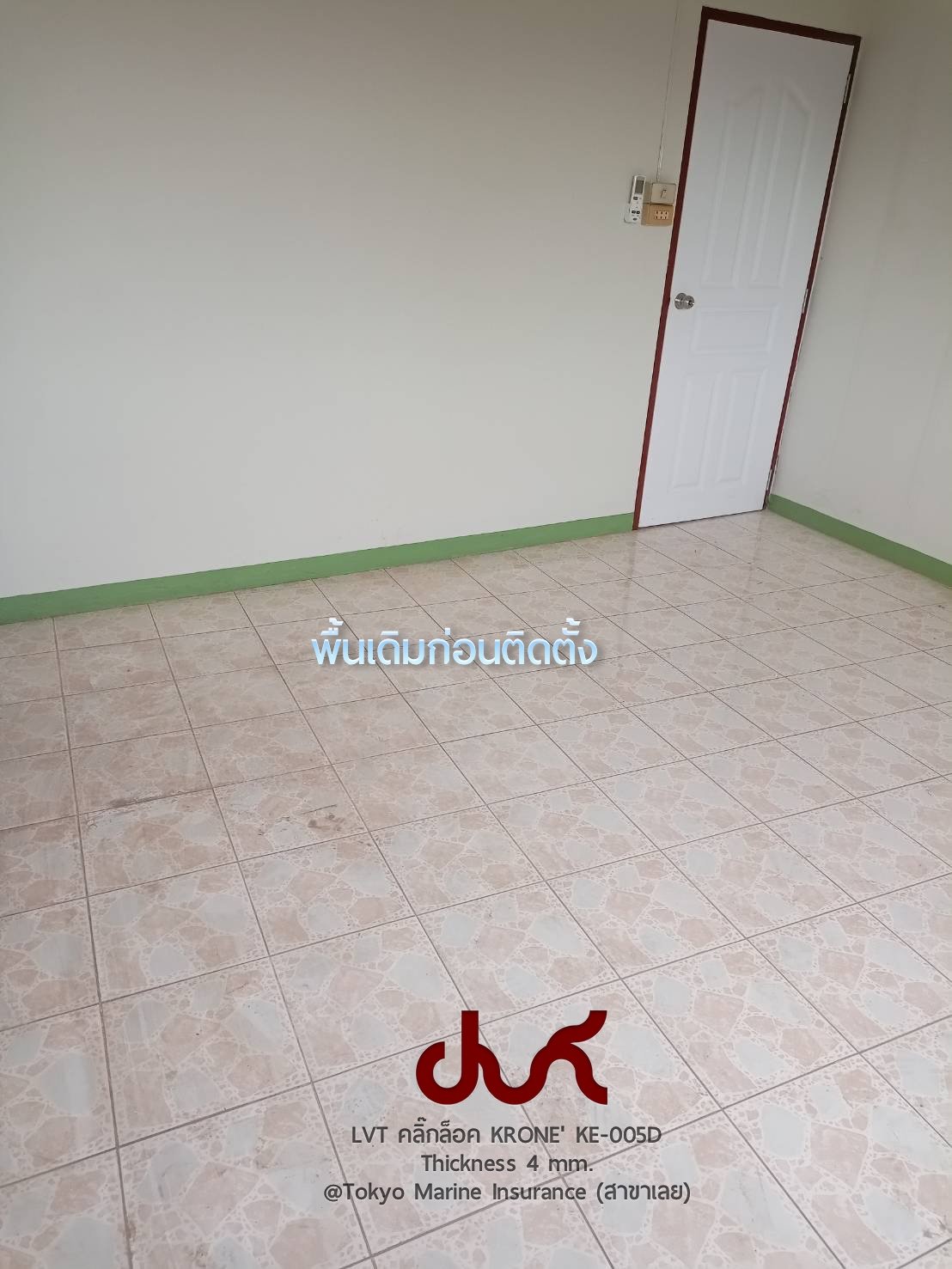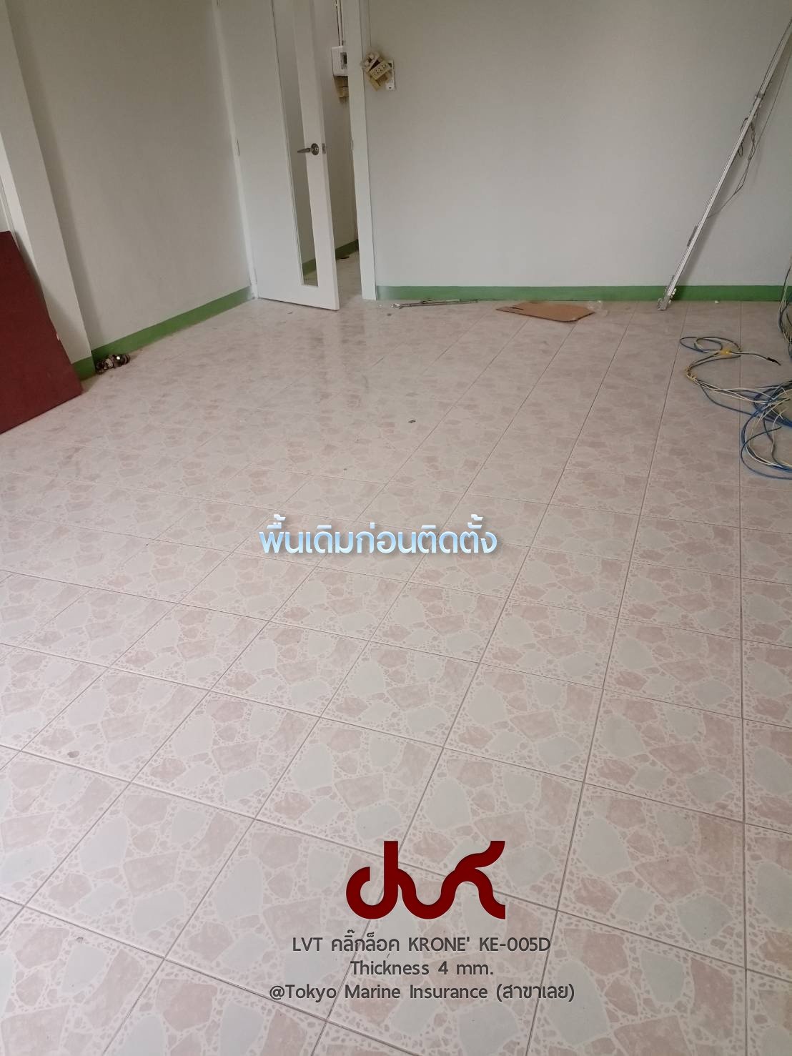 JOB : ติดตั้งพื้นกระเบื้องยางลายไม้ พร้อมบัวเชิงผนัง และตัวจบ ในส่วนของพื้นราบ ปูทับพื้นเซรามิค เดิม ใช้เวลาติดตั้ง 2 วัน เสร็จ