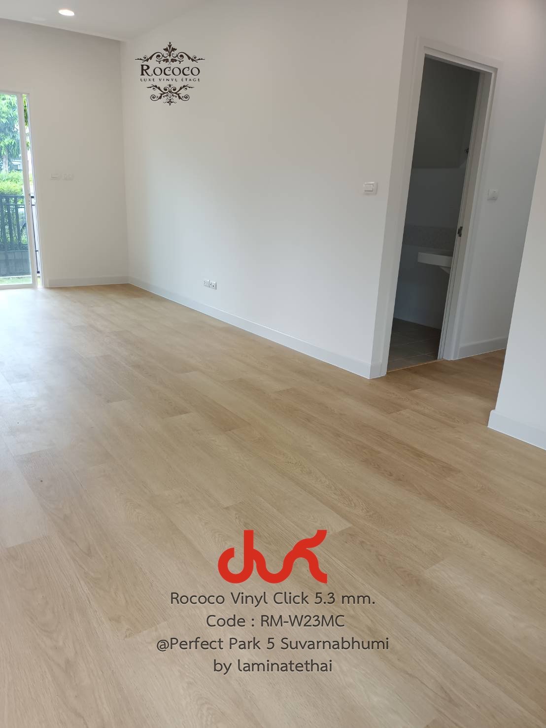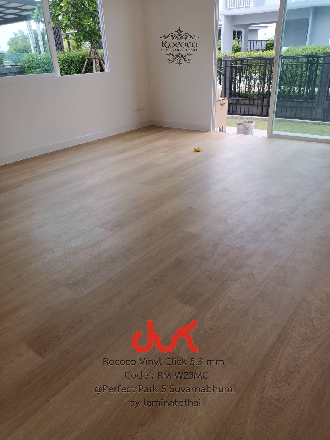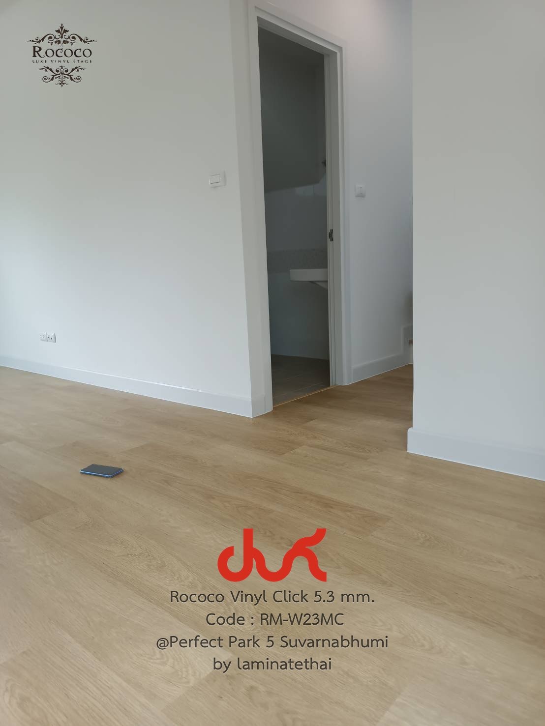 MATERIAL : กระเบื้อง SPC คลิ๊กล็อค ลายไม้ Rococo หนา 5.3 มม. Wear Layer 0.3 mm.