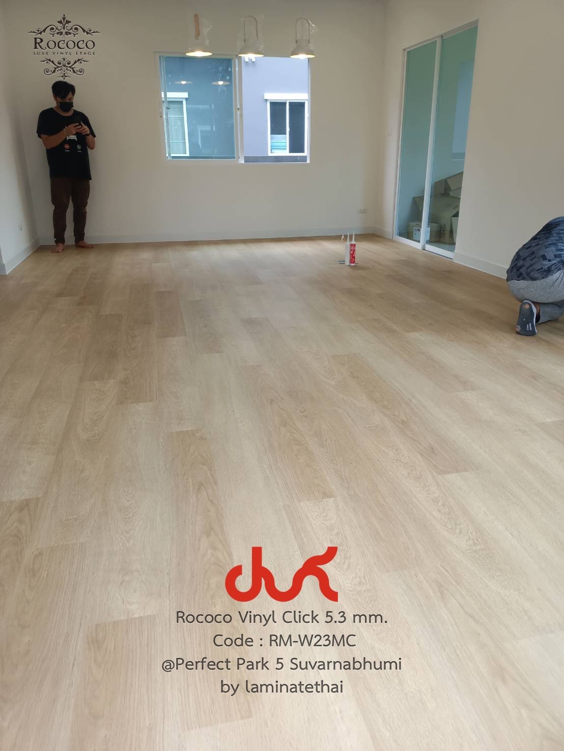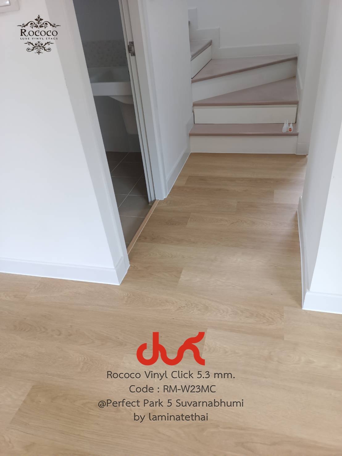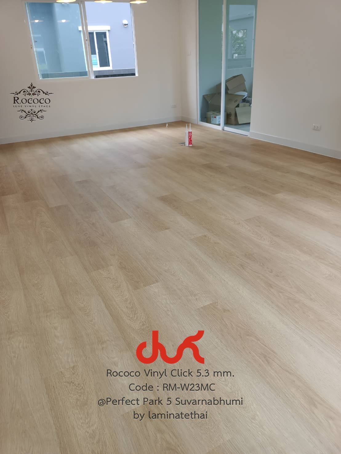 MATERIAL : กระเบื้อง SPC คลิ๊กล็อค ลายไม้ Rococo หนา 5.3 มม. Wear Layer 0.3 mm.